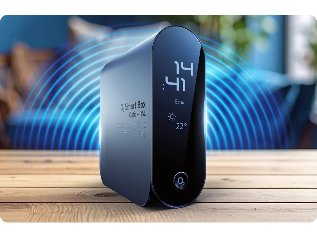 O₂ Smart Box DSL je vybaven technologií Wi-Fi 6, která přináší vyšší rychlosti, lepší pokrytí a větší kapacitu sítě. Díky tomu zvládne bez problémů obsloužit více zařízení najednou, což je ideální pro chytrou domácnost plnou telefonů, tabletů, notebooků a dalších zařízení. Wi-Fi 6 zároveň zajišťuje vyšší bezpečnost a efektivnější přenos dat i v rušných sítích.